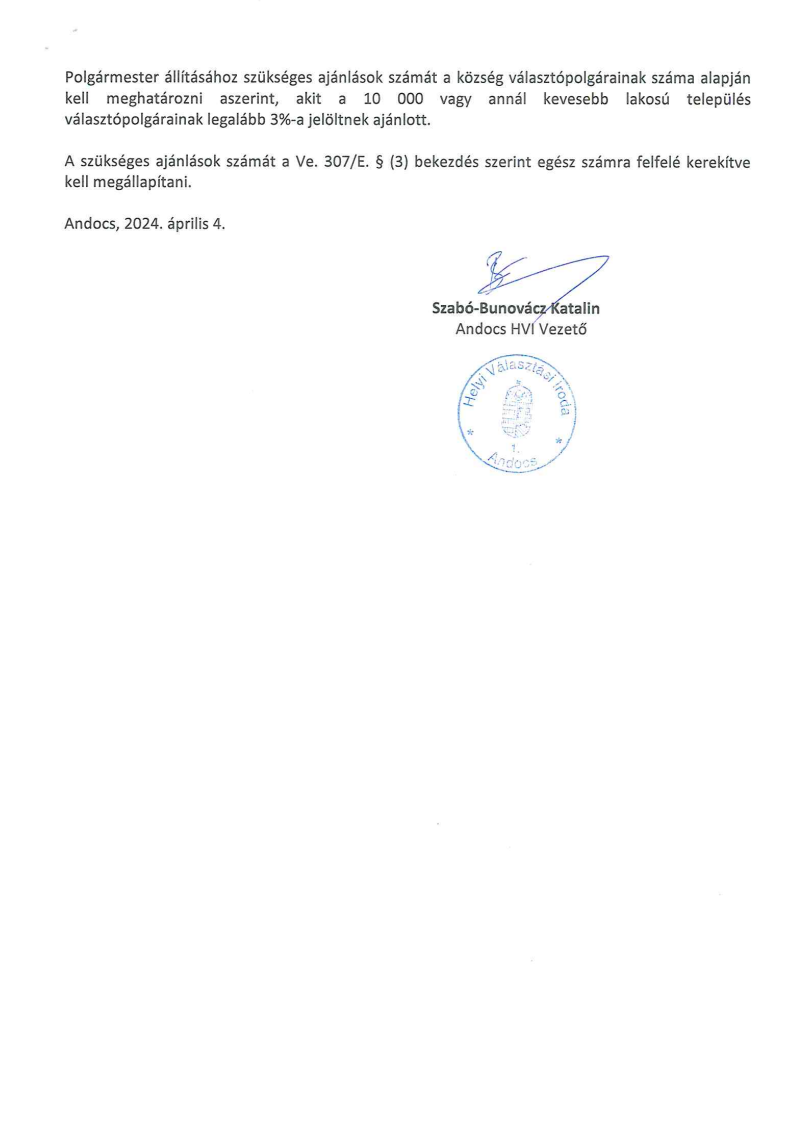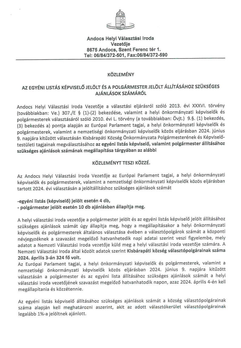 Kisbárapáti közlemény ajánlások számának megállapításáról Kisbárapáti közlemény ajánlások számának megállapításáról